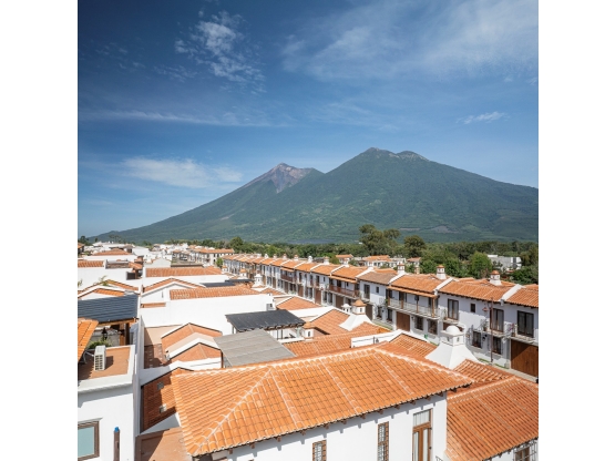 • El último nivel del edificio cuenta con una terraza compartida, perfecta para disfrutar de las vistas a los volcanes y al entorno colonial de Antigua.